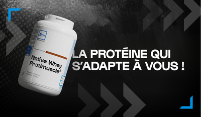 • Whey native : rapide à digérer, naturelle, riche en leucine pour activer la synthèse des protéines.