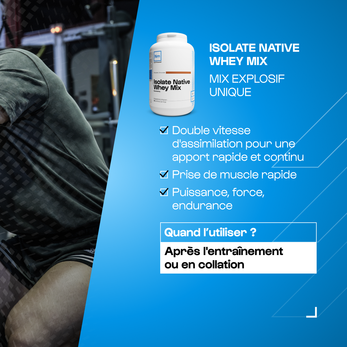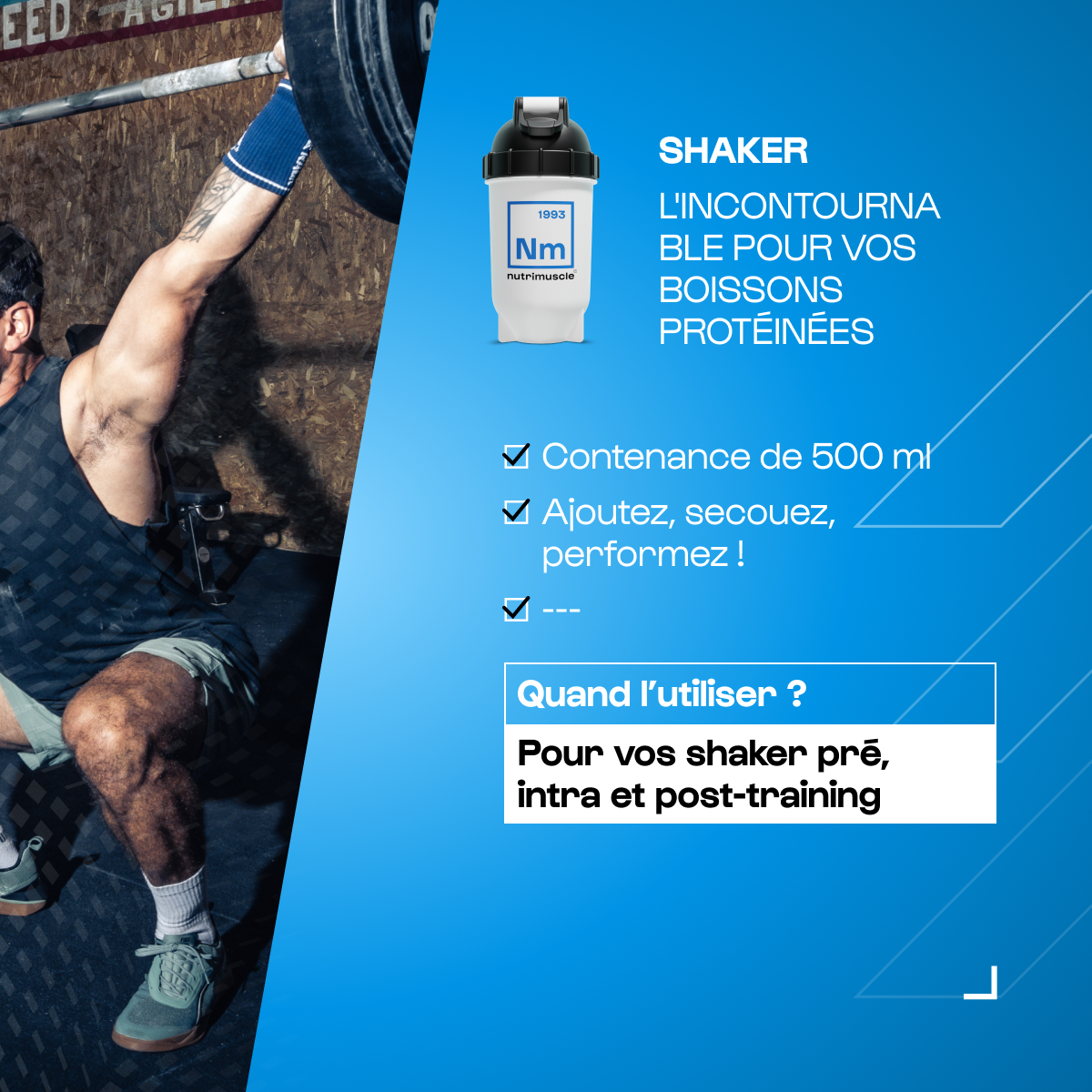 Si vous ne prenez pas de repas après votre séance d'entraînement, alors préférez consommer votre shaker après votre séance.