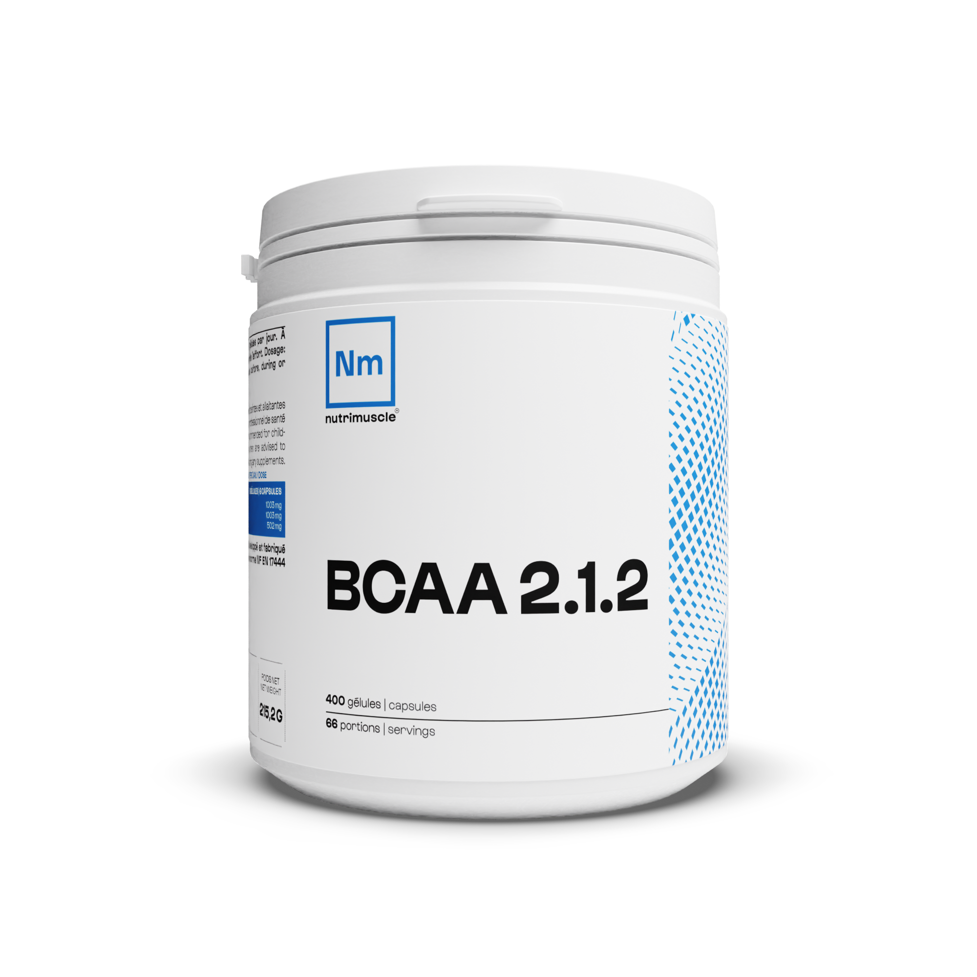 Les BCAA 2.1.2 Énergie musculaire Nutrimuscle présentent un ratio spécifique de 2 mesures de leucine, 1 mesure d’isoleucine et 2 mesures de valine. Cette formule est pensée pour soutenir l’énergie et l’endurance pendant l’effort, améliorer l’intensité et la performance musculaire, et renforcer la résistance face à la fatigue musculaire et nerveuse.