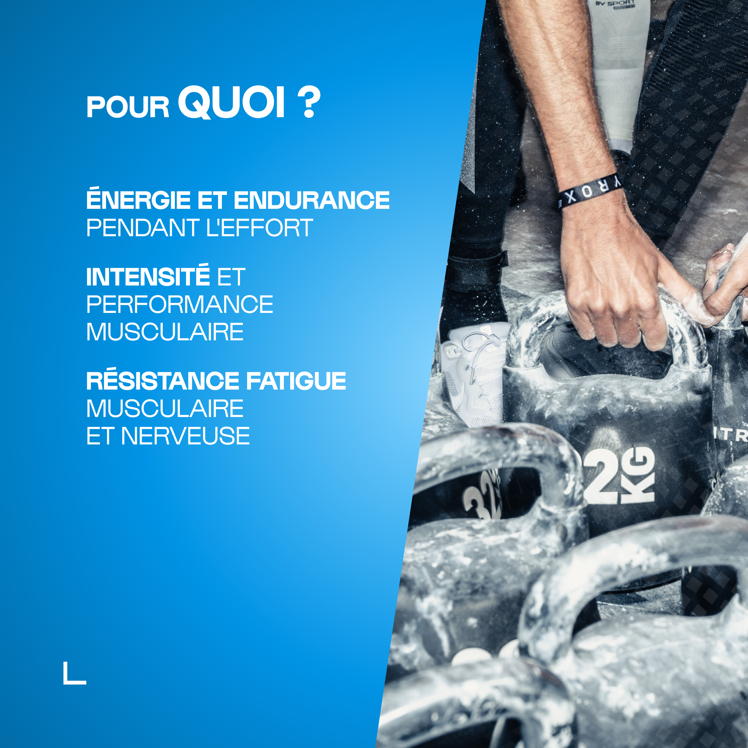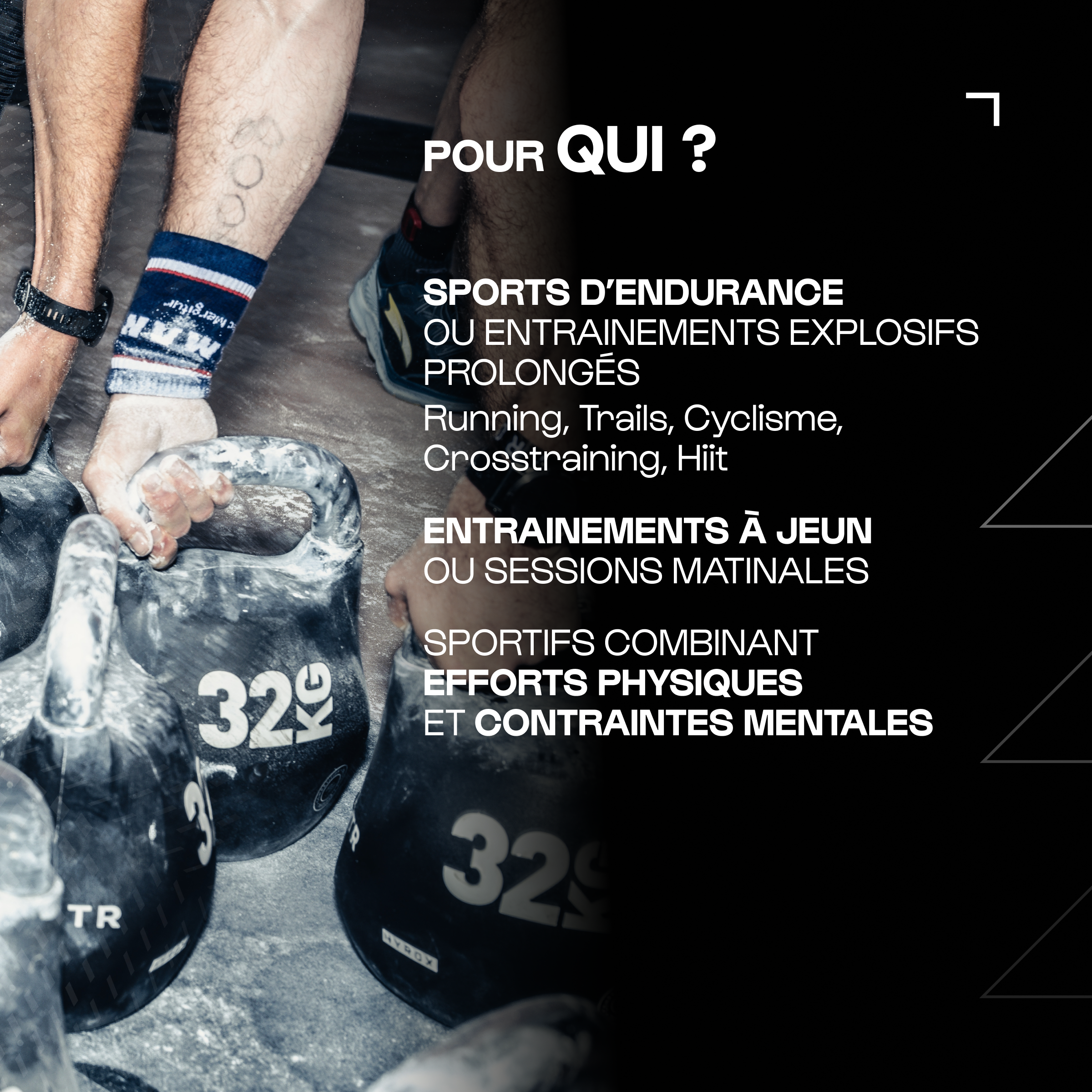 Soutien la récupération globale après l'effort pour réduire la fatigue, les courbatures et assurer l'intensité et l'efficacité de chaque entrainement
