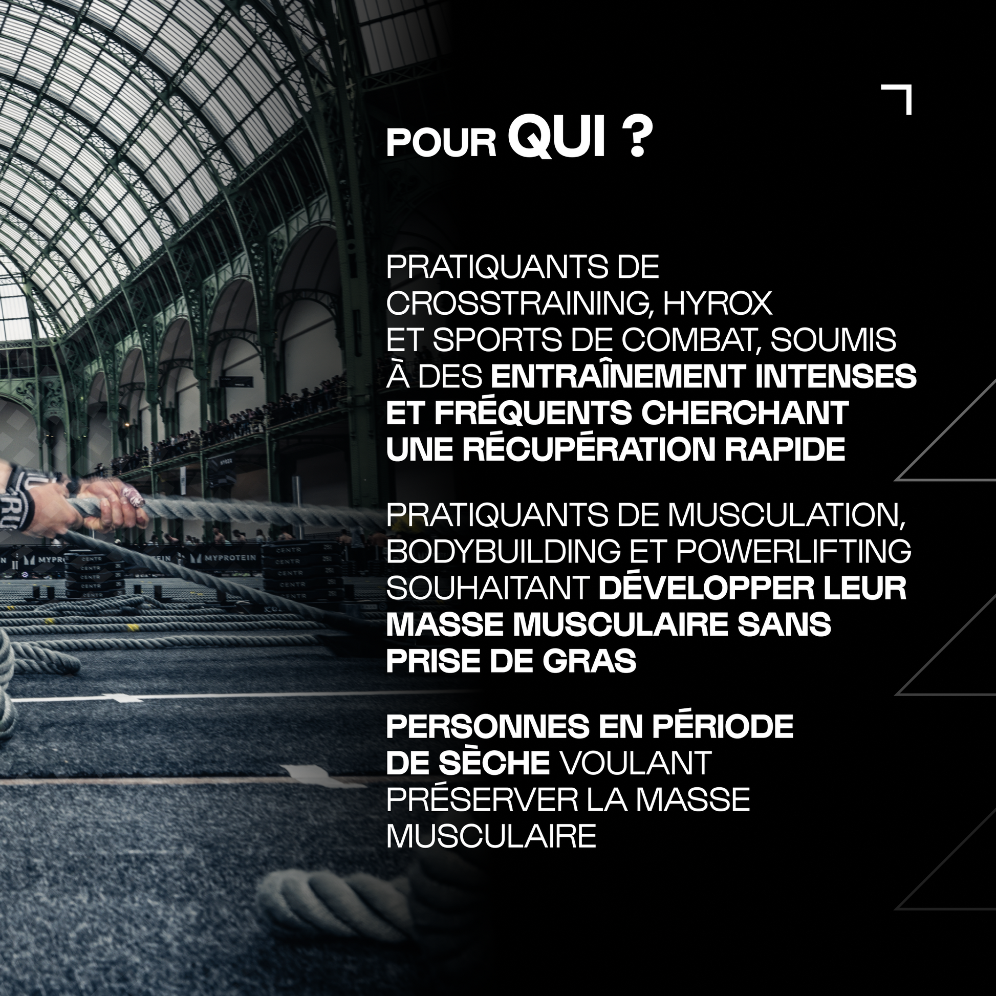 Soutien la récupération globale après l'effort pour réduire la fatigue, les courbatures et assurer l'intensité et l'efficacité de chaque entrainement